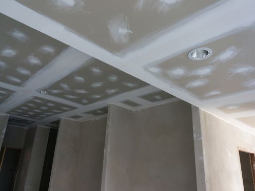 Instalação de forros de gesso, que são populares por seu acabamento sofisticado e possibilidade de embutir iluminação.